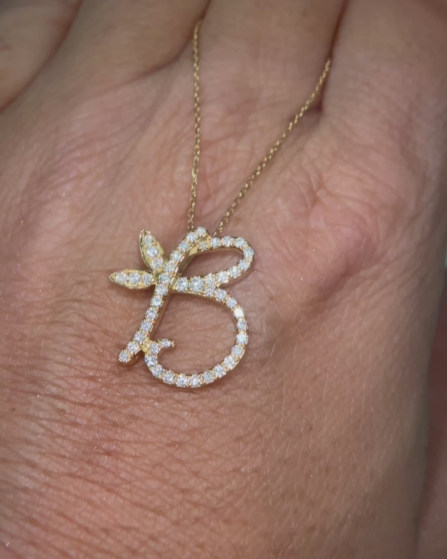 Diamond Floral Initial Pendant with Chain